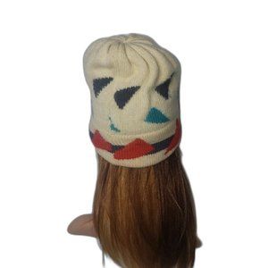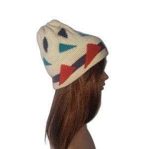 Vermont Needlecrafts Vintage Winter Wool Hat Ivory with Geometric Print
