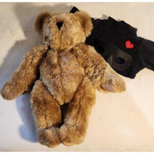 Vermont Teddy Bear Love Bandit Plush 10" Jointed Poseable Wearing Mask & Shirt V