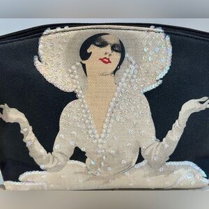 Vermouth Bianco Sequin Lady in Big Hat with Drink Clutch Travel or Cosmetics Bag
