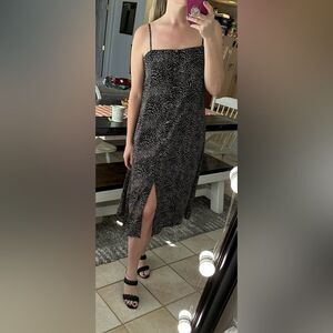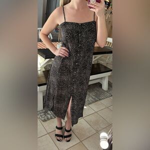 Vernacular Boutique Black & Yellow Print Button Front Cami Midi Dress