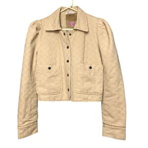 Vernacular Taupe Puff Sleeve cropped Quilted Jacket size S