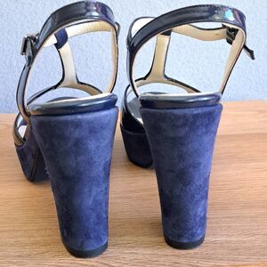 VERNISSAGE BLUE SUEDE PATENT LEATHER SLINGBACK HEELS WOMEN'S 9 US 39 EU T-STRAP ITALY 445
