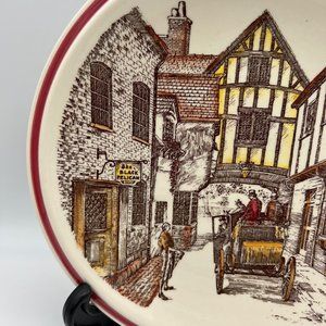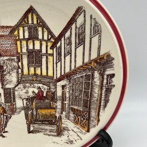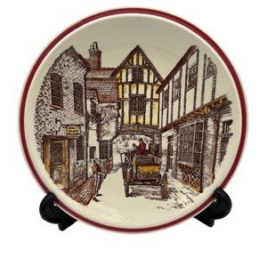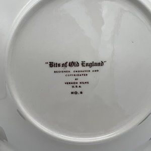 Vintage "Bits of Old England" collectible plate from Vernon Kilns. It is plate number 4 in the series. The plate measures approximately 8 1/4" across. Made in the USA.