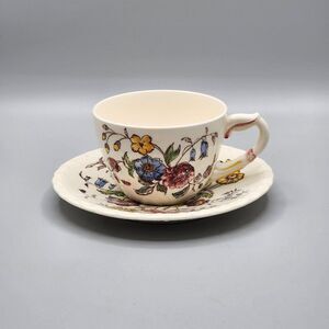 Vernon Kilns California May Flower Hand Painted Tea Cup & Saucer Set USA Garden