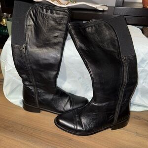 Elegant knee-high boots with sleek side zippers. Crafted from premium leather.