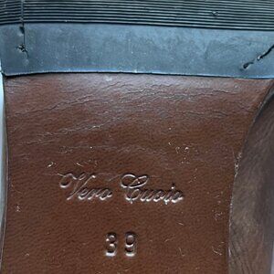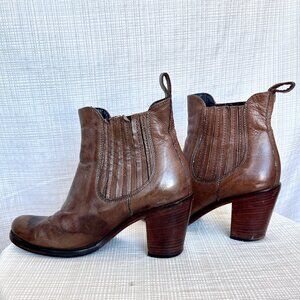Vero Cuoio Leather Brown Chunky Heel Booties Distressed Make in Italy