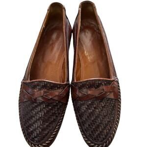 Vero Cuoio Men's Brown Woven Leather Loafers Slip-On Dress Shoes Size 7
