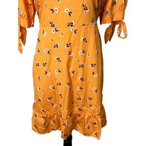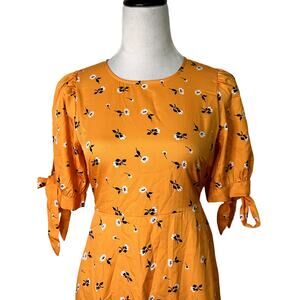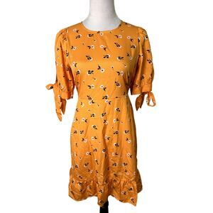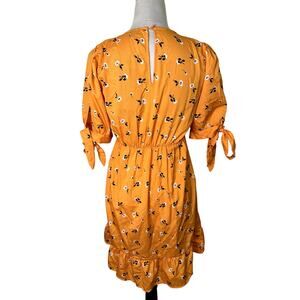 Vero Mada Women's Orange Floral Tie Short Sleeve Mini Dress M NWT