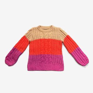 Vero Moda Becca Color-Block Chunky Cable Sweater, Size Small