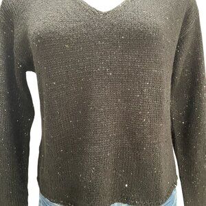 Sequin sweater, V-neck pullover, lightweight knit, sparkly sweater, holiday fashion, cozy chic, versatile layering, black sweater, minimalist glam, trendy knitwear.