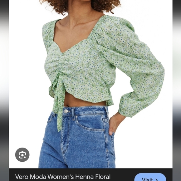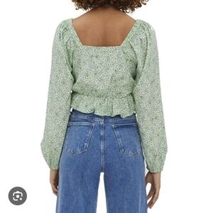 Chic floral blouse with puff sleeves. Light green hue adds freshness. Perfect for casual outings.