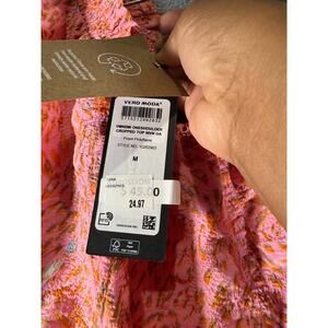 Vero Moda Blouse Women Medium Pink One Shoulder Smocked Vacation Summer