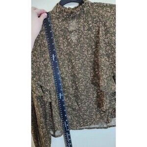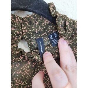 Vero Moda Blouse XS Green Pink Floral Ruffle High Neck Frill Long Sleeve Boho