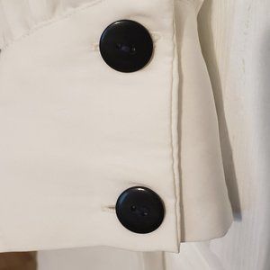 White puff-sleeve blouse with button details from the brand Vero Moda. Originally purchased from ASOS. Never worn, but removed tags. The buttons seem to have left some residue on the fabric directly behind them, but this is very hard to see when the sleeves are buttoned. NWOT. The tightest part of the sleeve when buttoned is 9.5 in around, which was too small for my arms.