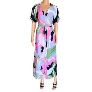 Vero Moda Colorful Floral V Neck Maxi Dress Medium