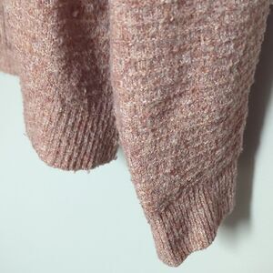 This soft pink sweater features a classic crew neckline and a relaxed fit, perfect for layering in cooler weather. Made from a cozy, textured knit, it offers both comfort and style for casual outings.