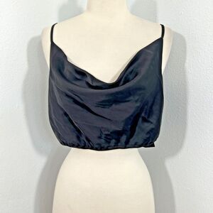 Vero Moda Crop Top Womens M Black Satin Cowl Spaghetti Bella Hadid 90s Y2K