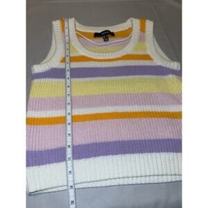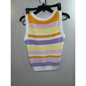 Vero Moda Cropped 70s Colorful Striped Cable Knit Pullover Sweater Vest Womens L