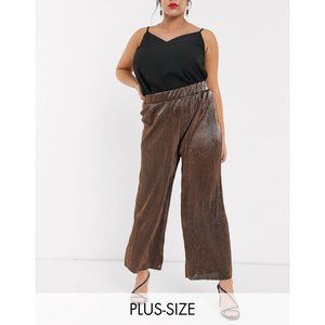 Vero Moda Curve Womens Plisse Wide Leg Pants Metallic Copper plus size 2X