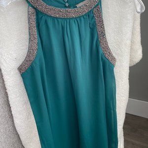 Vero Moda - Dark Green Tank w/ Sparkly Neckline - SMALL