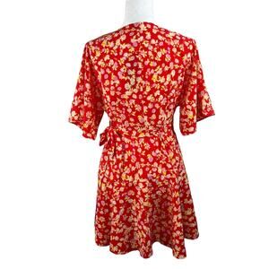 Vero Moda Fie Fame Red Floral Short Sleeve V-Neck Mini Wrap Dress Small NWT