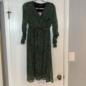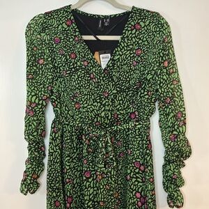 Vero Moda Floral Midi Dress Women’s Size Small Belted Ruched Femme Bohemian