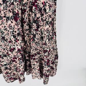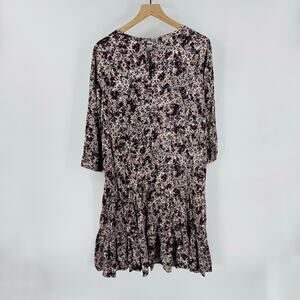 Beautiful Vero Moda dress featuring an allover floral print in shades of burgundy, black, and blush. Designed with a relaxed drop waist silhouette, long sleeves, and a soft flowy drape. Effortless to style for work, casual outings, or layered with boots and a jacket for fall. Women’s size Large.