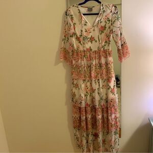 Print Maxi with 3/4 Ruffle Sleeves Sz S