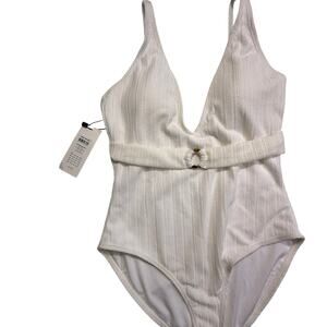 Vero Moda Freedom white belted one piece swimsuit size medium NWT