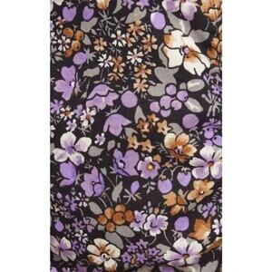 Lilac-hued wildflowers sweeten this stem-showing dress punctuated with luscious ruching for romantic textural interest.