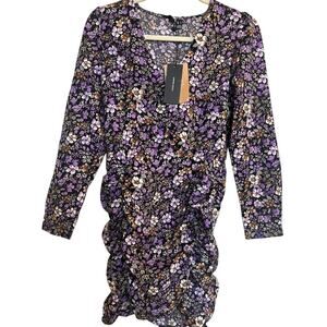 Vero Moda Isa Floral Print Long Sleeve Mini Dress Women’s Size S Ruched NWT