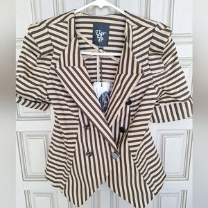 Vero Moda Jacket SzXS Stripe Blk/Tan Collar/Dbl Breasted Short Sleeves NWT