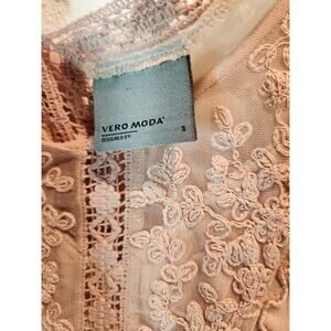 Vero Moda Modura Boho Lace Dress S Beige Long Sleeve Sheer Romantic Flowy chic