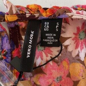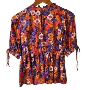 Vero Moda Multicolor Floral Peplum Smocked Top Ruffle Tie Sleeve Keyhole Back