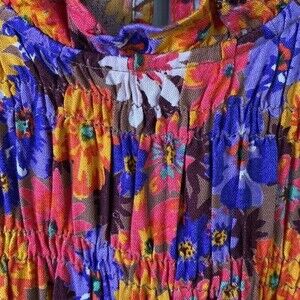 Vero Moda Multicolor floral peplum smocked top ruffle tie sleeve keyhole back