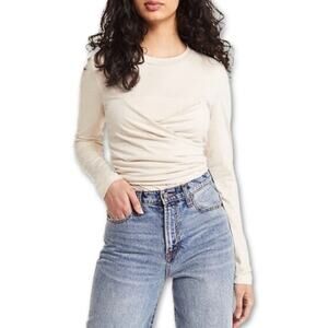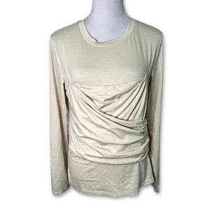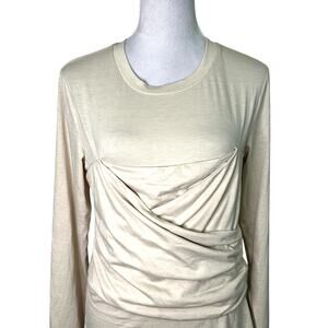 Vero Moda Nelly Top Blouse Ruched Knit Material Long Sleeve Beige Women's XL NWT