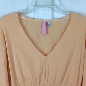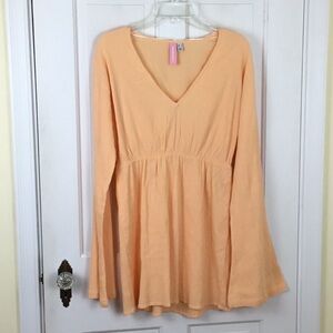 Vero Moda Peach Mini Dress Crepe V-Neck Bell Sleeve