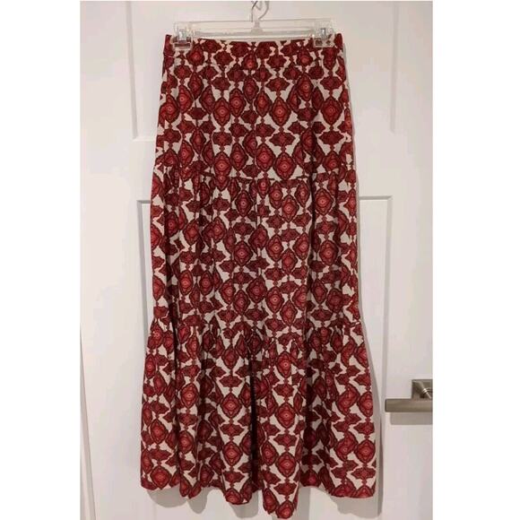 Vero Moda Red Geometric Print Tiered Maxi Skirt Elastic Waist Size Small