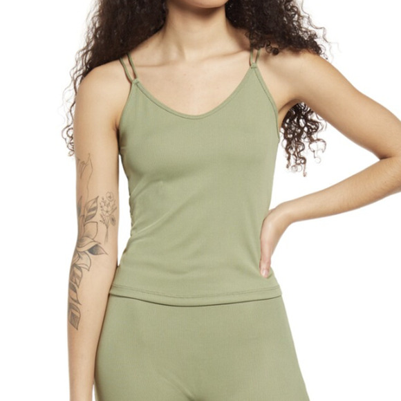 Whether you layer it or make it the star of the show, this lightly ribbed cami with multiple spaghetti straps is sure to make a lasting impression. V-neck. Spaghetti straps. 95% polyester, 5% elastane.