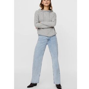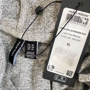 Vero Moda Tilda Ribbed Hoodie Long Sleeves In Light Grey Melange Size XL NWT