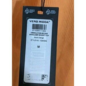 Make a statement with this stunning Vero Moda top in mock orange. The short sleeve and one-shoulder design give it a chic and modern look, perfect for travel or casual wear. The garment is made of a stretchy polyester, nylon, and viscose blend. It is machine washable for easy care.