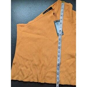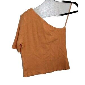 Vero Moda Top One Shoulder Short Sleeve Orange Ribbed Knit Stretch Medium