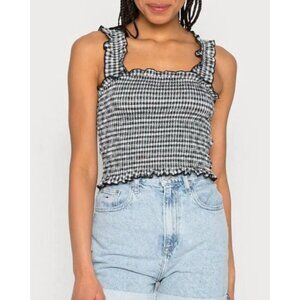 Vero Moda Vida Extra Cropped Top Women Small White Black Ruffle Smocked