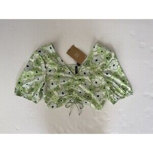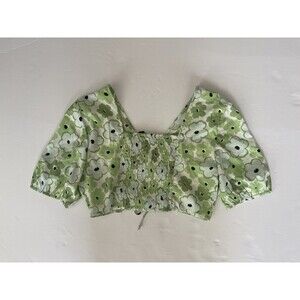 Vero Moda Vmhenna Lime Floral Cropped Blouse Top Size Small NWT