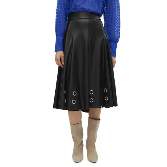 Vero Moda Women Vmemmy Faux Leather Eyelet Trim Skirt Black Size L