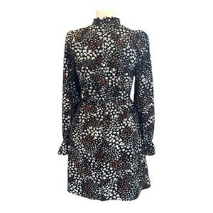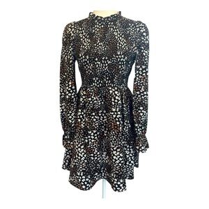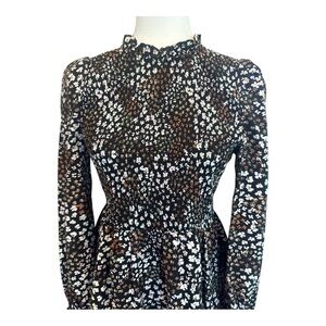 Vero Moda Women's Black Floral Smocked Jewel Neck Mini Dress Size S Long Sleeve