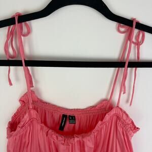 Vero Moda Womens Helyn Shirred Tie Straps Geranium Pink Crop Tank Top Small