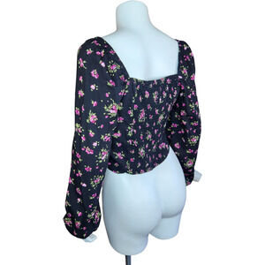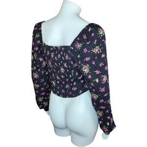 Vero Moda Womens Medium VMANNA Long Sleeve Crop Top Black Pink Floral Smock NWT