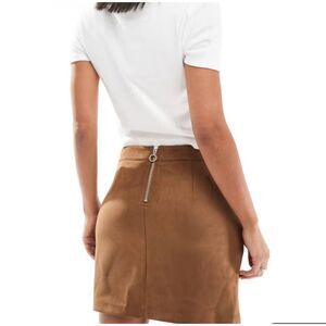 Vero Moda Women's Size Large Cognac Brown Preslie Faux Suede Mini Skirt