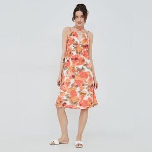 Vero Moda Women's dress VMJOA SL ABK DRESS WVN GA Size S in Orange/White NWT